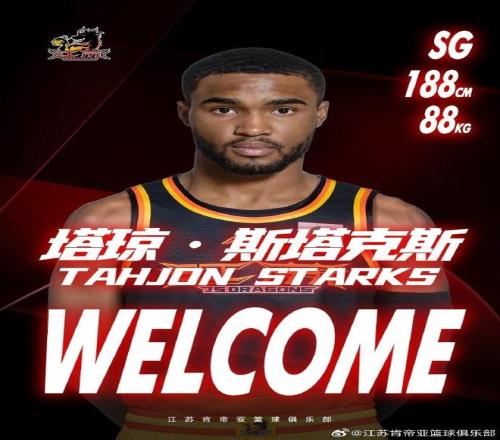 北京时间1月25日,江苏男篮本赛季至今只有4胜14负的联赛倒数第二的战绩,如今江苏男篮官宣签约新外援塔琼-斯塔克斯,且已经完成注册,将在今日对阵宁波男篮的比赛迎来加盟首秀。