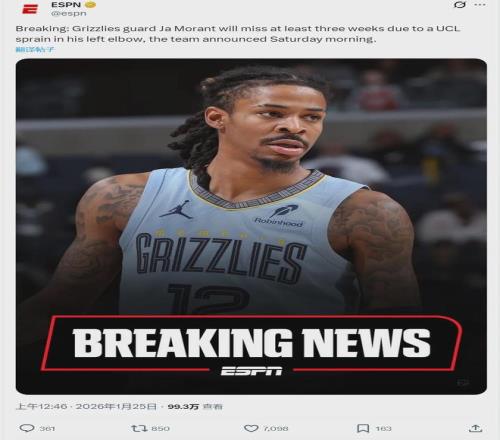 北京时间1月25日,灰熊官方宣布:莫兰特左肘尺侧副韧带(UCL)扭伤,将在3周之后接受复查。保守估计,莫兰特也得全明星之后才能复出。灰熊官方表示,莫兰特不需要手术治疗。距离交易截止日仅剩11天,莫兰特还会离队吗?