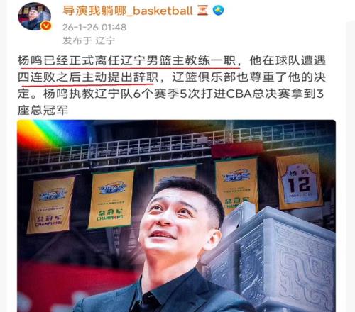 篮球媒体人:辽宁队同意杨鸣辞职,新一任主教练锁定人选