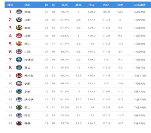 雷霆输球后2连败,上一场他们输给东部倒数第一的步行者,雷霆输球后37胜10负继续排名联盟第一。