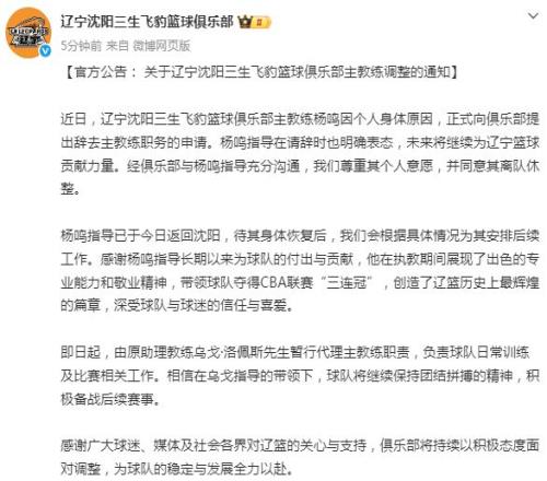 对于杨鸣如今主动请辞,辽篮官微下舆论普遍认为杨鸣解脱了: