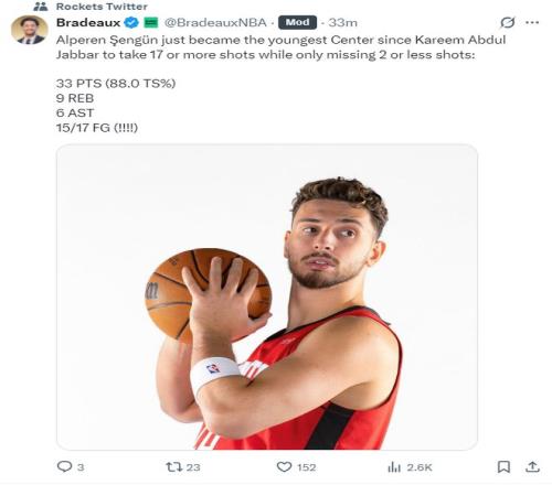 这场比赛申京17中15的表现也引发了休斯顿媒体的热议,他也一战创造多项纪录: