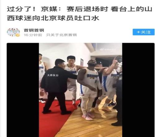 最后一个消息,分享一下山西球迷又闯祸的情况。在最新对战北京队的比赛中,山西球迷又做出了一些备受争议的事情。当时比赛结束之后,北京队的外援走过球员通道,没有想到却遭到主场球迷吐口水的待遇。这个做法也在现场引发了巨大的争议,很多球迷包括北京队的球员都对这样的做法非常不满。目前暂时没有看到CBA官方公布的最新罚单,但正常来说这样的做法极有可能会导致山西球队遭到联盟的处罚,甚至停止主场的结果。