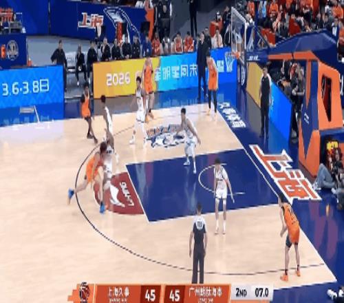 开场后,广州男篮反客为主,连续命中3记3分,而上海男篮这套首发阵容一分未得,以0比12落后。