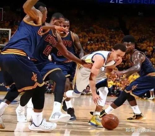拉拽推抱都无法形容库里面对的防守,只能说观感上,库里更像是每时每刻身上都挂了不止一个人在打球。
