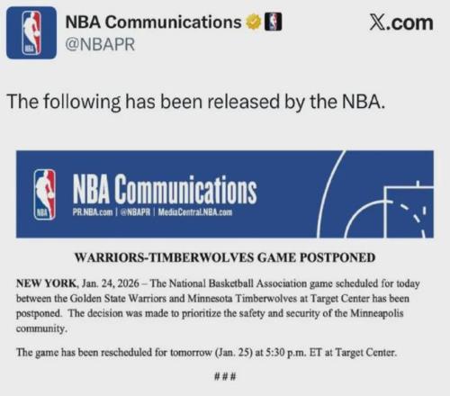 据报道,在勇士官方社媒账号下,非常多的明尼阿波利斯人留言希望取消比赛,现在NBA终于有了反应: