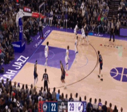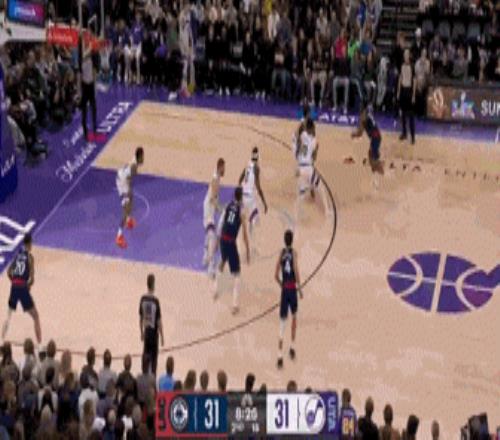 他在防守端也超级积极,不断压迫对手