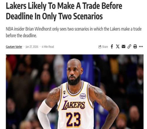 消息来自于ESPN名记Brian Windhorst,他在参加播客节目《The Hoop Collective》中谈及湖人在这个交易截止日的计划时坦言,紫金军团想要交易只有两种可能。