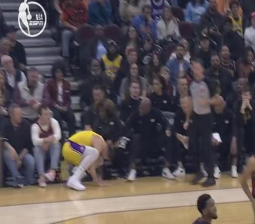 比赛第一节,湖人球员东契奇投篮后撤的过程中踩到了骑士主场地板的边缘,一脚踩空导致崴脚,之后返回了更衣室。