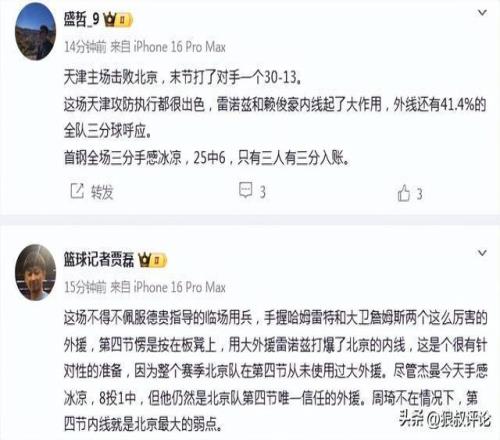 篮球记者贾磊发文点评: