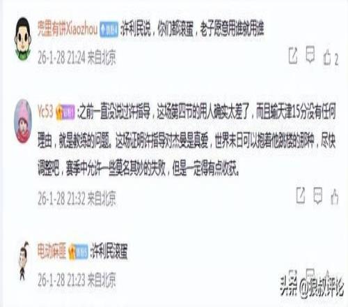 北京爆冷不敌天津引热议!许利民用人遭质疑首度被喊“下课”声音