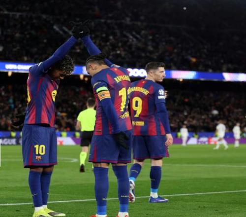 亚马尔、莱万多夫斯基和拉菲尼亚,是巴萨标志性的进攻三叉戟,他们在欧冠对阵哥本哈根的比赛中联袂首发,并且三人皆有进球入账。