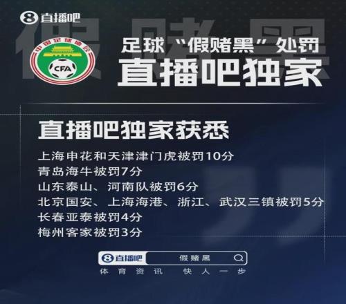 有一说一,这些中国足球的蛀虫被彻底清理出去,实在大快人心,而他们也是罪有应得。不过,相比较第一次会议,这一次的会议又做出了不一样的决策,那就是公布了对职业俱乐部的处罚结果。其中,中超有9队涉案,遭遇了不同程度的处罚。比如天津津门虎足球俱乐部,扣10分并罚款100万元;上海申花足球俱乐部,扣10分并罚款100万元;上海申花足球俱乐部,扣10分并罚款100万元;山东泰山足球俱乐部,扣6分并罚款80万元……