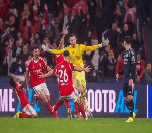 在伤停补时第8分钟,本菲卡门将特鲁宾插入皇马禁区跃起进球,帮助球队晋级欧冠淘汰赛附加赛。