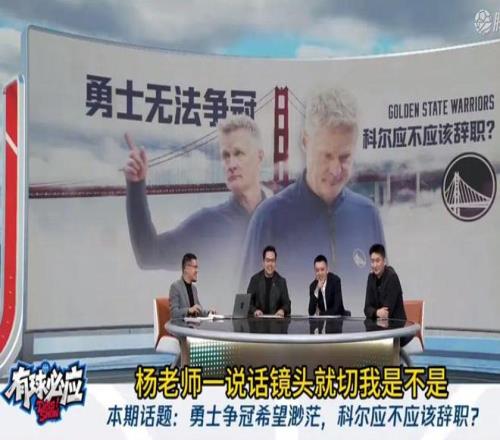 但是,这期节目借NBA勇士主帅科尔是否该辞职的话题,用“王朝教练需与球队同甘共苦”等隐喻言论,直指刚卸任辽宁男篮的杨鸣...