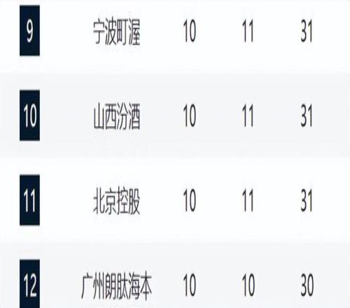 CBA新排名!青岛山西狂输,北控觉醒,辽宁跌至13,新疆起势中断