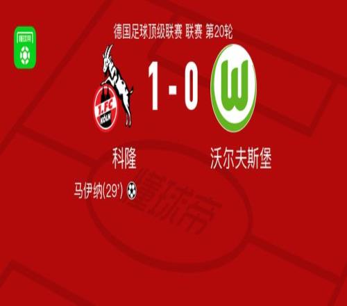 北京时间1月31日德国足球顶级联赛 联赛 第20轮,科隆主场对阵沃尔夫斯堡。科隆马伊纳破门。最终比分科隆 1-0 沃尔夫斯堡。