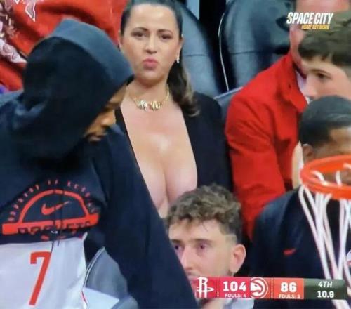 火箭球迷:我需要看下回放。 这女的绝对知道自己在镜头里。