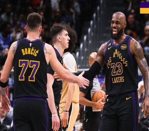 节末东契奇和卡林顿对轰三分,半场结束时,湖人77-48领先奇才,东契奇半场就拿到26分11篮板11助攻的三双数据。东契奇也以18分4秒拿到三双的成绩,刷新湖人队史最快纪录!进入下半场,老詹继续助攻艾顿扣篮,拉拉维亚补篮,詹姆斯随后上演一记空接背扣,又将奇才打停。奇才溃不成军,东契奇又连续跳投命中!中段老詹一打二强行造犯规后,东契奇继续扔三分,艾顿吃饼,湖人最多领先奇才38分!后半段双方维持35分左右陷入拉锯战,奇才在节末打出一波小高潮,三节战罢,湖人108-84。