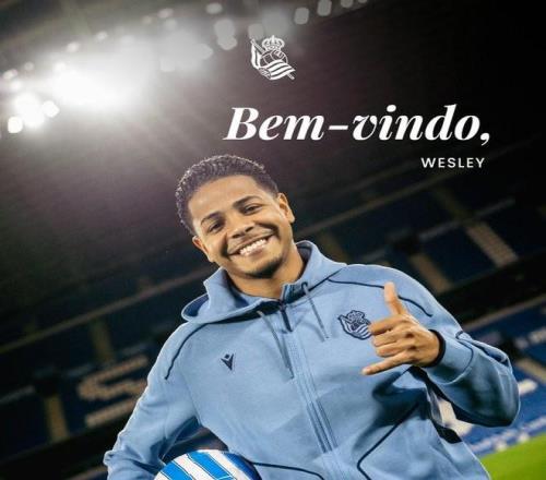 韦斯利-特谢拉(2005年生于巴西圣保罗)是一名巴西新星,出道于科林蒂安青训梯队。2023年,年仅18岁的他升入科林蒂安一线队,在两年多的时间里出战84场比赛;此后他转会加盟利雅得胜利,彼时沙特豪门为签下这位巴西前锋支付了1800万欧元转会费。韦斯利是一名能力出众、身体素质出色的边锋,可胜任左右两路。他曾入选巴西各年龄段青年国家队,其过人的天赋与战术多面性,将为皇家社会的进攻端注入全新活力。欢迎加盟,韦斯利。
