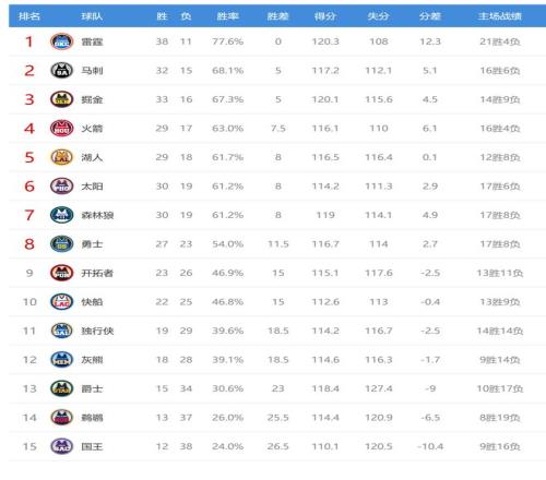 鹈鹕赢球后13胜37负,排名从西部第15升到第14,灰熊输球后5连败,战绩18胜28负,排名从西部第11掉到12,独行侠成为第11。