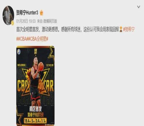 对了,贺希宁今年还生涯首次入选全明星首发,球迷用投票证明了他本赛季的发挥的确无比亮眼。