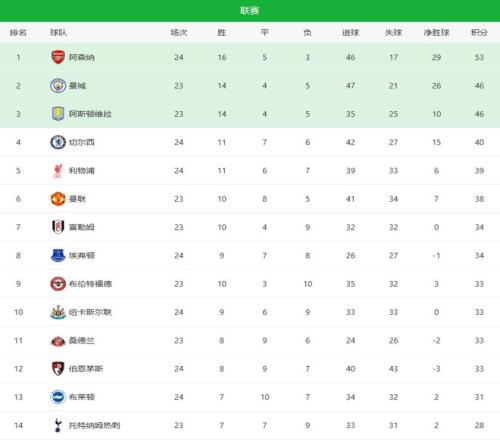 北京时间2月1日凌晨,英超第24轮,领头羊阿森纳4-0大胜升班马利兹联,在先赛一场的情况下,领先曼城与维拉7分;切尔西主场3-2逆转西汉姆联,豪取各项赛事5连胜,一跃来到了积分榜第四;红军利物浦在安菲尔德4-1逆转纽卡斯尔,反超红魔曼联暂居第五,本轮尚未开打的红魔则掉到了第六,4到6名的球队仅差2分,联赛争四大业彻底是乱套啦!