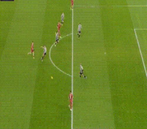 上半场,在被戈登率先进球之后,维尔茨站了出来,他在禁区内漂亮过人后横敲,埃基蒂克跟进一脚近距离推射,稳稳把球打进,为利物浦扳平比分。之后不久,埃基蒂克再进1球,半场结束,利物浦2-1反超比分。