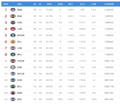 今日比赛后马刺、掘金排名互换,森林狼、湖人、太阳排名互换,其他西部球队排名不变。