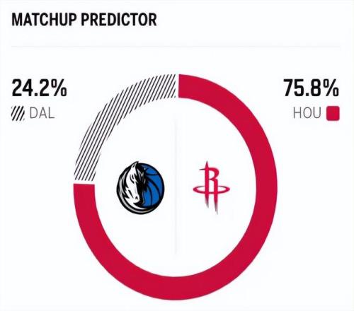 这是两队本赛季的第四次交锋,前三次交手,火箭仅仅只有1胜2负,独行侠意外稍占优势。赛前,美媒ESPN对本场比赛进行了胜率预测,火箭队胜率高达75.7% ,优势巨大,而独行侠胜率则仅为24.3% 。