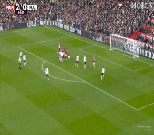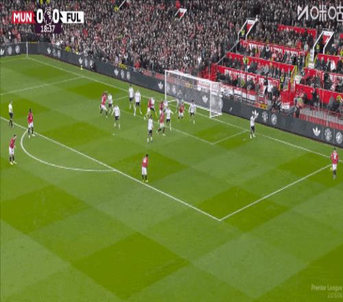 第19分钟,B费助攻,卡塞米罗后点泰山压顶头槌破门,曼联1比0富勒姆!