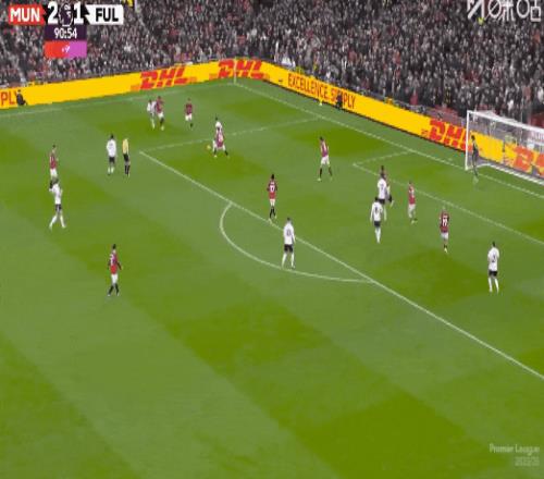 补时第1分钟,凯文内切轰出世界波扳平比分!富勒姆2比2曼联。